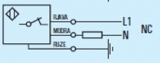 Prenesi PDF Induktivno stikalo ~ Izmenično (AC) s kablom AC 8 5719 NC Slika: Shema: Električna shema: Lastnost Vrednost Dimenzija M8 Način vgradnje stikala Neporavnan Preklopna razdalja Sn [mm] 2 Napajalna napetost AC Napajalna napetost U[V] 20-240 V AC Padec napetosti U[Ud] 7,5V Maksimalni tok I[mA] 300mA Mimalni tok >5mA Material ohišja Plastika Oblika ohišja valjasta Dimenzija ohišja (L) 45 mm Mehanska zaščita IP 67 Priklop 2m PVC Temperatura območje delovanja -25 °C do + 70 °C Ponovitvena točnost R < 2% Sn Histereza Hy 3% - 15% Frekvenca preklopa [f] 20 Hz LED funkcija DA