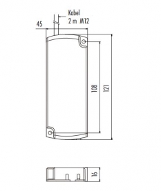 Prenesi PDF LED industrijske luči ~ Napalnik za LED luči LED NAPAJALNIK 15W Slika: Shema: Električna shema: Lastnost Vrednost Proizvajalec BINDER Poraba moči v mirovanju (W) <0.1 Izkoristek >80% Kratkostična zaščita izhoda DA Maksimalni tok I[mA] 0,5 A Dimenzija ohišja (VxŠxD) v mm 121 x 45 x 16 Napajalna napetost U[V] 220 - 240 VAC Izhod 24V Moč izhoda 15 W Dobava 1-2 tedna po naročilu Opis Napajalnik za LED luči, priklop preko priključnih sponk na 230V, na izhodu napajalnika M12 kabelski konektor dolžine 2m za priklop na LED luč. Za daljše dolžine kabla nas kontaktirajte.