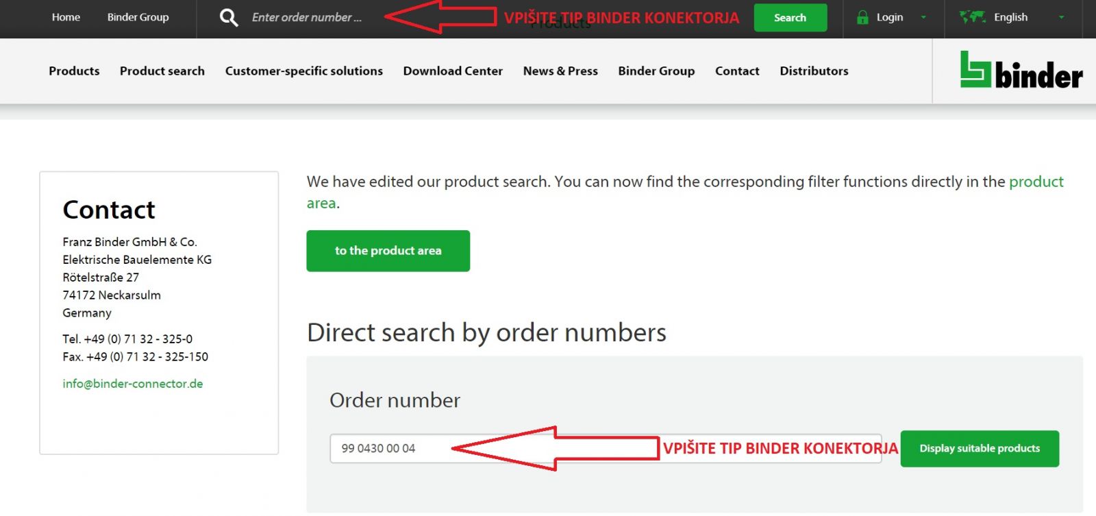 vpišite oznako konektorja brez - npr. 99 0430 00 04