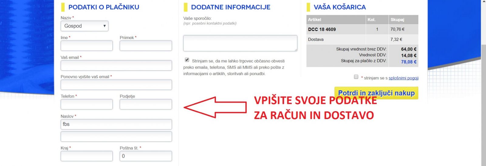 Za posebnosti in dodatne opombe vpišite v polje sporočilo