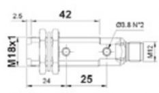 Prenesi PDF Optični senzorji svetlobna zapora ~ Svetlobna zapora-oddajnik S50-PA-5-G00-XG Slika: Shema: Električna shema: Lastnost Vrednost Dimenzija M18 Preklopna razdalja Sn [mm] 30000 Napajalna napetost VDC Napajalna napetost U[V] 10-30 V DC Padec napetosti U[Ud] 2 V Lastna raba Io[mA] 30 mA Material ohišja PBT plastika Oblika ohišja valjasta Dimenzija ohišja (L) 81,5 mm Mehanska zaščita IP 67 Priklop M12-4p Temperatura območje delovanja - 25°C do + 55 °C Frekvenca preklopa [f] 250 Hz Zaščita zamenjave polov Vgrajena LED funkcija DA Izvedba optike RAVNA Dodatno naročite: SPREJEMNIK S50-PA-5-F01-PP +konektor 4K 12 0 02 PVC/F+ nosilec M18 (NK18)