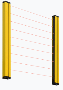 Varnostne svetlobne zavese se uporabljajo na nevarnih mestih v industriji. Preprečujejo poškodbe ljudi in pravočasne zaustavitve strojev, ob postavitvi na ustrezni varnostni razdalji od stroja. V primeru prekinitve žarka med optičnim oddajnikom in sprejemnikom se vklopi izhod in varnostni rele modul izklopi stroj. Različne ločljivosti med žarki varujejo človeka (prst, dlan, roko in telo).