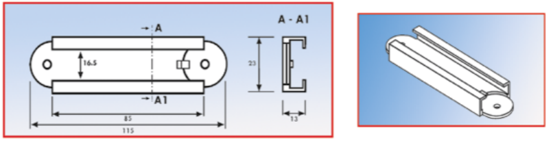 GR-316 širina 18,5mm, višina 14,5 mm, sila proženja 11N, (1,1kg), preklop ob stisku 2 mm, U alu profil širina 18,50 mm višina 8,00 mm