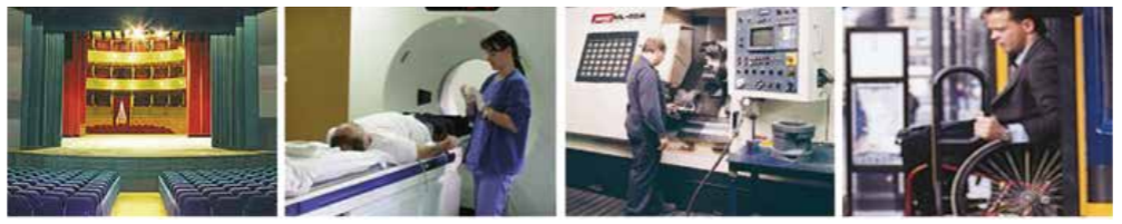 Gledališče zaščita pred udarci, medicinske naprave, obdelovalni stroji, brizganje plastike, drsna vrata...