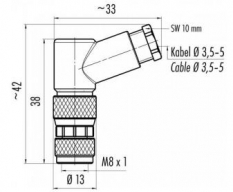 Prenesi PDF M8 konektorji brez kabla ~ Konektor 4K 08 0 00/F VIJAČNI Kotni Slika: Shema: Električna shema: Lastnost Vrednost Dimenzija M8 Stikalni tok [mA] 4000 mA Material ohišja PA plastika/Cinkova litina Dimenzija ohišja (L) 42 mm Mehanska zaščita IP 67 Priklop M8 ženski Temperatura območje delovanja - 40°C do + 85 °C LED funkcija NE Napetost 60 V Presek vodnika 0,5 mm2 Število pinov 4 Spajanje vodnikov Vijačno Uvodnica za kabel 3,5 - 5 mm Uporaba Za priklop induktivnih stikal, optičnih senzorjev, magnetnih senzorjev na mestih kjer je prostorska omejitev. Vijačni način spajanja zagotavlja hitri priklop vodnikov na terenu.