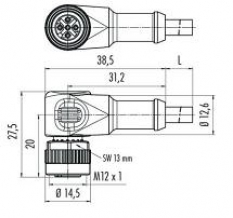 Prenesi PDF Induktivni nadzor ~ Konektor 4K 12 0 03 PVC/F Kotni Slika: Shema: Električna shema: Lastnost Vrednost Dimenzija M12 Stikalni tok [mA] 4000 mA Material ohišja PUR Dimenzija ohišja (L) 38,5 mm Mehanska zaščita IP 68 Priklop 3m PVC Temperatura območje delovanja - 25°C do + 85 °C LED funkcija NE Napetost 250 V Presek vodnika 0,34 mm2 Število pinov 4