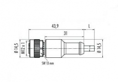 Prenesi PDF Konektorji - razni ~ Konektor 4R 12 0 05 PVC/F (X) ŽENSKI Slika: Shema: Električna shema: Lastnost Vrednost Dimenzija M12 Stikalni tok [mA] 4000 mA Material ohišja PVC Dimenzija ohišja (L) 43,9 mm Mehanska zaščita IP 67 Priklop 5m PVC Temperatura območje delovanja - 25°C do + 85 °C LED funkcija NE Napetost 250 V Presek vodnika 0,25 mm2 Število pinov 4