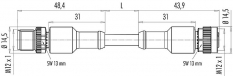 Prenesi PDF Konektorski adapter ~ Konektorski adapter 4R 12 0 0,6 PUR/FM ŽENSKI / MOŠKI Slika: Shema: Električna shema: Lastnost Vrednost Dimenzija M12 Stikalni tok [mA] 4000 mA Material ohišja PUR Dimenzija ohišja (L) 43,9 mm Mehanska zaščita IP 68 Priklop 0,6 m PUR Temperatura območje delovanja - 25°C do + 85 °C LED funkcija NE Napetost 250 V Presek vodnika 0,34 mm2 Število pinov 4 Uporaba Za podaljševanje senzorskih priključnih kablov na strojih. Vsebuje sponko za označitev priključka.