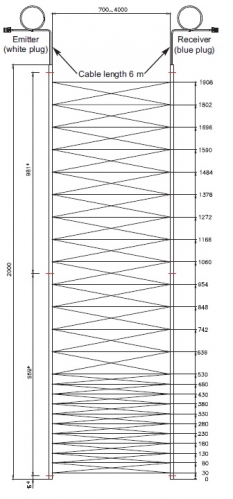 Prenesi PDF Induktivni nadzor cegard/Lift LI 70 s certifikatom T Slika: Shema: Električna shema: Lastnost Vrednost Napajalna napetost U[V] 19,2 - 28,8 VDC Mehanska zaščita IP 65 Odzivni čas 50 - 80 ms Dimenzija letev (VxŠxD) v mm 2000 x 14 x 17 Proizvajalec CEDES Izhod PNP in relejski Certifikati CE, TÜV Aplikacija Modernizacijo tovornih dvigal, ki nimajo notranjih kabinskih vrat Razdalja delovanja 0 m - 4 m Svetloba okolja (v Lux) > 50,000 Zaščitna višina polja 1.908 mm Število žarkov 70