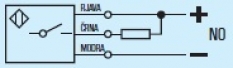 Prenesi PDF Induktivno stikalo ~ Kabelsko DCA 8 5608 NPN NO Slika: Shema: Električna shema: Lastnost Vrednost Dimenzija M8 Način vgradnje stikala Neporavnan Preklopna razdalja Sn [mm] 2 Napajalna napetost DC Napajalna napetost U[V] 10-30 V DC Padec napetosti U[Ud] 1,5 V Valovistost napetosti Ud < 10% Lastna raba Io[mA] 10 mA Maksimalni tok I[mA] 150mA Material ohišja Nerjavno jeklo 1.4301 Oblika ohišja valjasta Dimenzija ohišja (L) 51 mm Mehanska zaščita IP 67 Priklop 2m PVC Temperatura območje delovanja -25 °C do + 70 °C Ponovitvena točnost R < 2% Sn Histereza Hy 1% - 15% Frekvenca preklopa [f] 1000 Hz LED funkcija DA