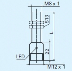 Prenesi PDF Induktivno stikalo ~ Konektorsko, s povečano preklopno razdaljo DCE 8 4628 K NPN NO+NC Slika: Shema: Električna shema: Lastnost Vrednost Dimenzija M8 Način vgradnje stikala Poravnan Preklopna razdalja Sn [mm] 2.5 Napajalna napetost DC Napajalna napetost U[V] 10-30 V DC Padec napetosti U[Ud] 1,5 V Valovistost napetosti Ud < 10% Lastna raba Io[mA] 10 mA Maksimalni tok I[mA] 150mA Material ohišja Nerjavno jeklo 1.4301 Oblika ohišja valjasta Dimenzija ohišja (L) 55 mm Mehanska zaščita IP 67 Priklop M12-4p Temperatura območje delovanja -25 °C do + 70 °C Ponovitvena točnost R < 2% Sn Histereza Hy 1% - 15% Frekvenca preklopa [f] 800 Hz LED funkcija DA