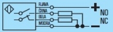 Prenesi PDF Induktivno stikalo ~ Kratko ohišje, kabelsko DSA 18 4629 PNP NO+ NC Slika: Shema: Električna shema: Lastnost Vrednost Dimenzija M18 Način vgradnje stikala Poravnan Preklopna razdalja Sn [mm] 5 Napajalna napetost DC Napajalna napetost U[V] 10-30 V DC Padec napetosti U[Ud] 1,5 V Valovistost napetosti Ud < 10% Lastna raba Io[mA] 10 mA Maksimalni tok I[mA] 200mA Material ohišja Nerjavno jeklo 1.4301 Oblika ohišja valjasta Dimenzija ohišja (L) 35 mm Mehanska zaščita IP 67 Priklop 2m PVC Temperatura območje delovanja -25 °C do + 70 °C Ponovitvena točnost R < 2% Sn Histereza Hy 1% - 15% Frekvenca preklopa [f] 400 Hz LED funkcija DA