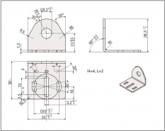 Prenesi PDF Nosilci za senzorje ~ Nosilec kotni M8 Nosilec FBS NK08 Slika: Shema: Lastnost Vrednost Dimenzija 30 x 30 x 26 mm, luknja premer 8,2mm Material ohišja Cinkana pločevina Uporaba Kotni nosilec za montažo M8 stikal (induktivni, kapacitivni, optični, magnetni, temperaturna tipala) Prednost za uporabnika Prihranek časa pri montaži senzorja preko nosilca, brez zamudne izdelave nosilca