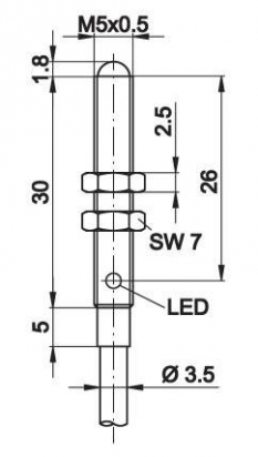 Prenesi PDF Optični senzorji razno ~ Optično tipalo OT 05 01 05 PNP NO Slika: Shema: Električna shema: Lastnost Vrednost Dimenzija M5 x 0,5 Preklopna razdalja Sn [mm] 0-20 Histereza Hy < 10% Napajalna napetost DC Napajalna napetost U[V] 12-30 V DC Padec napetosti U[Ud] 2 V Lastna raba Io[mA] 15 mA Maksimalni tok I[mA] 100 mA Material ohišja NERJAVEČE JEKLO V2A Material leče Safirno steklo Oblika ohišja valjasta Dimenzija ohišja (L) 37 mm Dolžina navoja [mm] 30 Mehanska zaščita IP 67 Priklop kabel 2m, PVC Temperatura območje delovanja - 25°C do + 55 °C Frekvenca preklopa [f] 200 Hz Zaščita zamenjave polov Vgrajena LED funkcija DA Izvedba optike RAVNA Način delovanja svetlo-prevodni Svetloba oddajnika Infrardeča 880 nm Nastavitev razdalje NE Odzivni čas 2,5 ms Zaloga je omejena 1-5 kosov DA Uporaba Za tipanje materiala na razdalji 20mm, kjer ni prostora za vgradnjo večjih senzorjev, kjer so velika mehanska nihanja. Nadomešča M5 induktivno stikalo kjer je večkratna možnost poškodbe sprednjega dela. Tipanje doziranja zrn koruze v sejalnici.