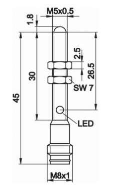 M5 X 0,5 dolžina ohišja: 46.8 mm |