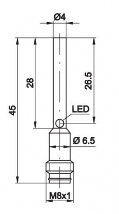 Za tipanje materiala na razdalji 10 mm, kjer ni prostora za vgradnjo večjih senzorjev, kjer so velika mehanska nihanja. Nadomešča induktivno stikalo premera 4 mm kjer je večkratna možnost poškodbe sprednjega dela. Tipanje doziranja zrn koruze v sejalnici. |