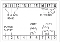 enostavna montaža na omarici preko 22 mm luknje (kot za tipko), univerzalni vhod (PT, J, K, S tip, NTC, PTC) |