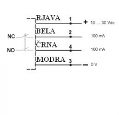 Prenesi PDF Optični senzorji razno ~ Tipalo - fiksni fokus S41-2-D-P PNP NO + NC Slika: Shema: Električna shema: Lastnost Vrednost Dimenzija 37 X 20 X 12 mm Preklopna razdalja Sn [mm] 110 Napajalna napetost DC Napajalna napetost U[V] 10-30 V DC Padec napetosti U[Ud] 1,5 V Lastna raba Io[mA] 30 mA Maksimalni tok I[mA] 100 mA Material ohišja ABS plastika Oblika ohišja Kvader Dimenzija ohišja (L) 37 mm Mehanska zaščita IP 67 Priklop 2m PVC Temperatura območje delovanja - 25°C do + 55 °C Frekvenca preklopa [f] 500 Hz Zaščita zamenjave polov Vgrajena LED funkcija DA Izvedba optike RAVNA Način delovanja temno/svetlo-prevodni Svetloba oddajnika rdeča 660 nm Nastavitev razdalje NE Odzivni čas 1 ms