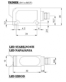 Prenesi PDF Optični senzorji razno ~ Tipalo S41-5-C-P PNP NO+NC Slika: Shema: Električna shema: Lastnost Vrednost Dimenzija 37 X 20 X 12 mm Preklopna razdalja Sn [mm] 2 - 350 Napajalna napetost DC Napajalna napetost U[V] 10-30 V DC Padec napetosti U[Ud] 1,5 V Lastna raba Io[mA] 30 mA Maksimalni tok I[mA] 100 mA Material ohišja ABS plastika Oblika ohišja Kvader Dimenzija ohišja (L) 37 mm Mehanska zaščita IP 66 Priklop M8-4p Temperatura območje delovanja - 25°C do + 55 °C Frekvenca preklopa [f] 500 Hz Zaščita zamenjave polov Vgrajena LED funkcija DA Izvedba optike RAVNA Način delovanja temno/svetlo-prevodni Svetloba oddajnika Infrardeča 880nm Nastavitev razdalje DA Odzivni čas 1 ms Dobava z zaloge Zaloga je omejena 1-5 kosov DA