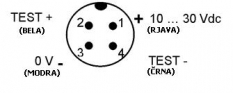 Prenesi PDF Optični senzorji svetlobna zapora ~ Svetlobna zapora-oddajnik S50-PA-5-G00-XG Slika: Shema: Električna shema: Lastnost Vrednost Dimenzija M18 Preklopna razdalja Sn [mm] 30000 Napajalna napetost VDC Napajalna napetost U[V] 10-30 V DC Padec napetosti U[Ud] 2 V Lastna raba Io[mA] 30 mA Material ohišja PBT plastika Oblika ohišja valjasta Dimenzija ohišja (L) 81,5 mm Mehanska zaščita IP 67 Priklop M12-4p Temperatura območje delovanja - 25°C do + 55 °C Frekvenca preklopa [f] 250 Hz Zaščita zamenjave polov Vgrajena LED funkcija DA Izvedba optike RAVNA Dodatno naročite: SPREJEMNIK S50-PA-5-F01-PP +konektor 4K 12 0 02 PVC/F+ nosilec M18 (NK18)
